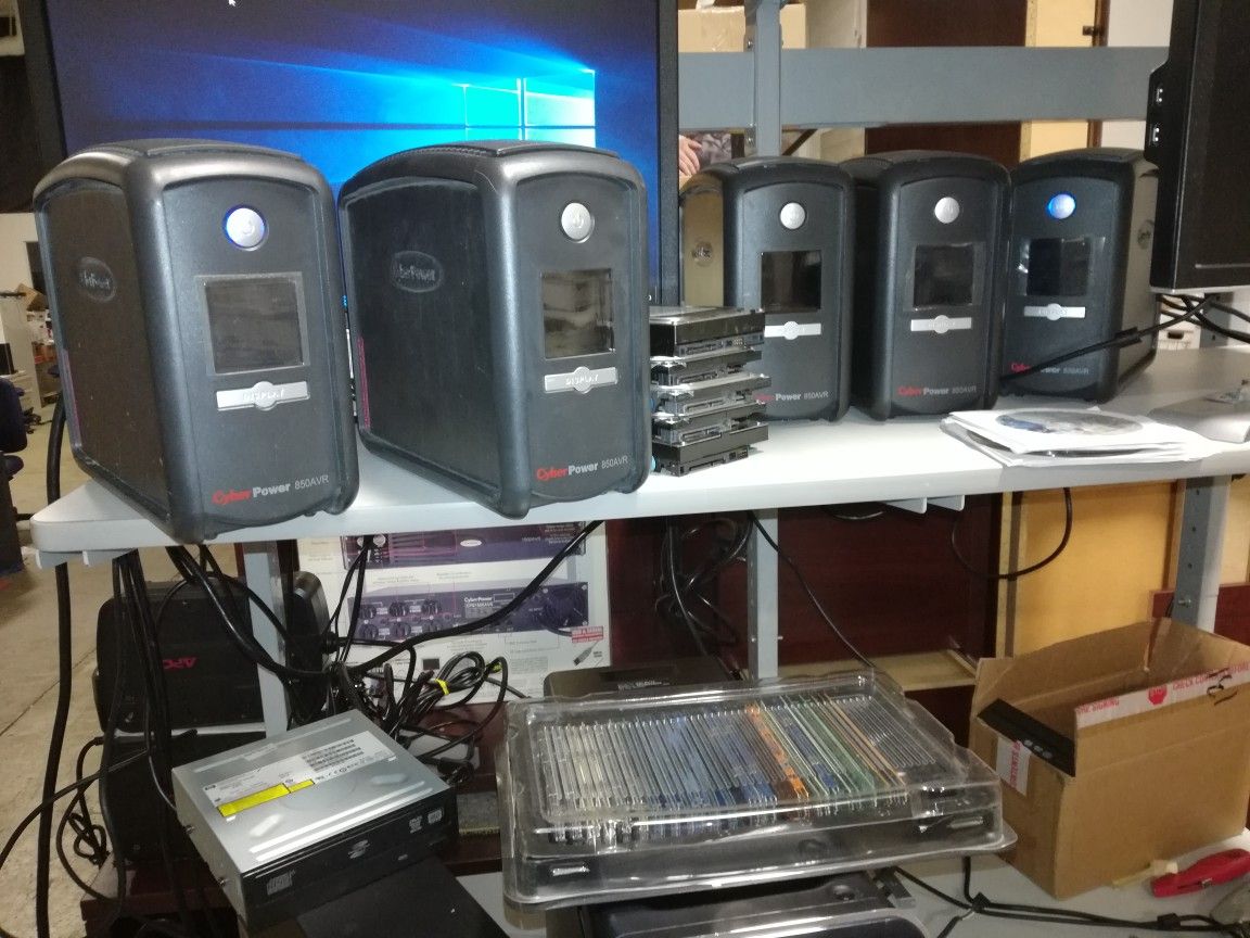 Cyberpower 850avr battery backups have 5 available . Like new condition . They have 7 power outputs on the back .