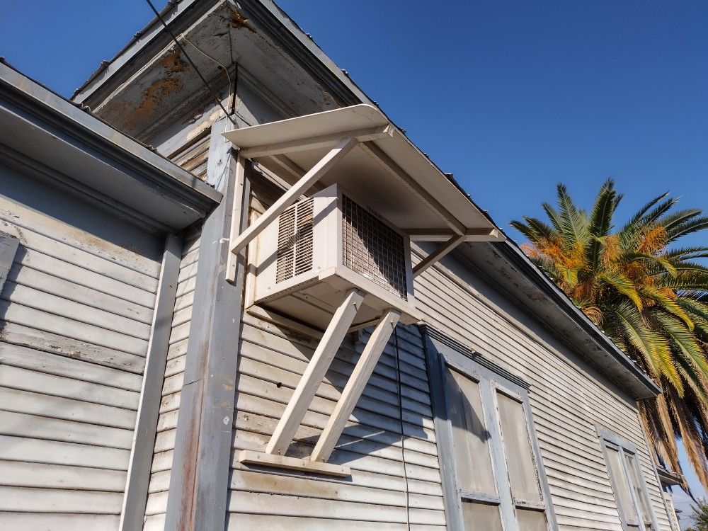 You can have this awning or shade for an air conditioner and the support . you just need to climb the ladder and take it down.