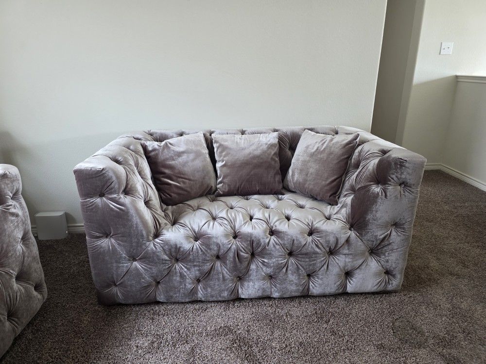 Gray Velvet Tuffetted Love Seat