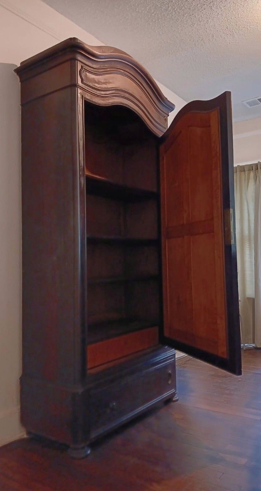 If this ad is up...it's available. Selling the house, need to sell this armoire it can't go with us. Owner wants $380 OBO Reasonable offer serious buyers only. *Not particle wood* this piece is huge and heavy, whoever takes it needs very high ceilings or it will NOT fit in the residence. Three shelves Two drawers - 1 inside the other on the outside Intact beveled edge mirror on door -also very heavy Mirror -55 Inches in length and 27 inches width) Must pick up Make offer