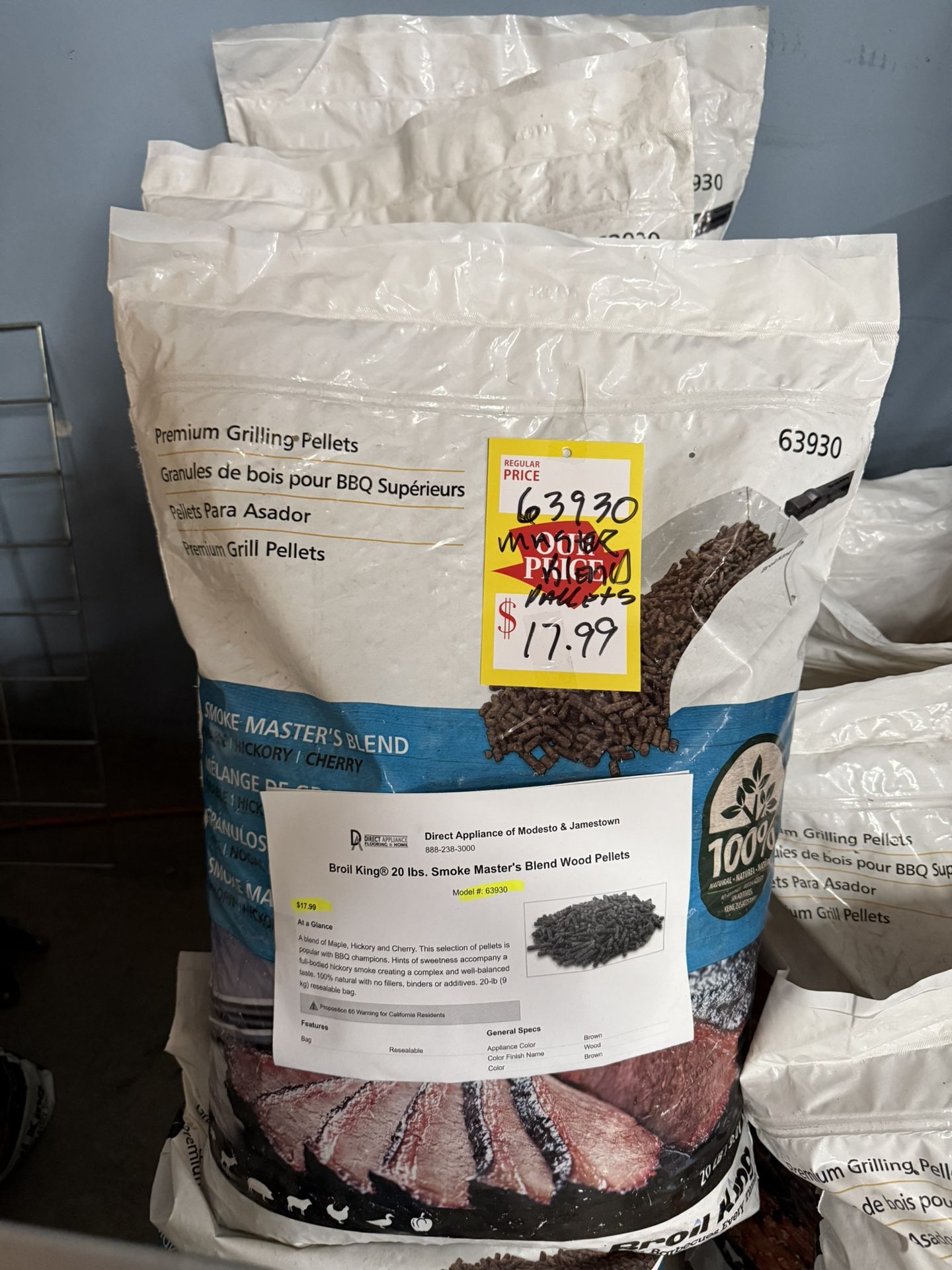 Get grill-ready with premium wood pellets at a great price at $17.99. Perfect for BBQ fans and pitmasters looking for a rich, smoky flavor on all meats. Great for use in all pellet grills and smokers. 📍 Available at Direct Appliance Outlet 701 K Street, Modesto, CA 95354 🕒 Mon–Sat: 9AM–5PM | Sun: Closed 💬 Message us to reserve your bags – limited stock!