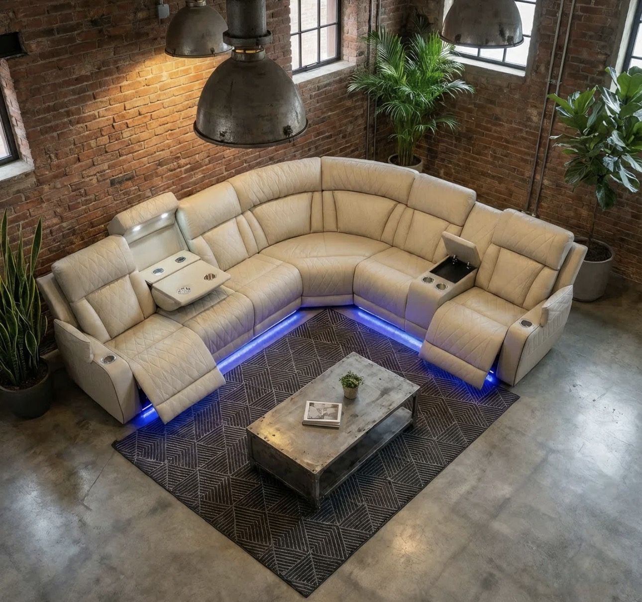 Beige Leather All Power Electric Reclining Sectional Couch