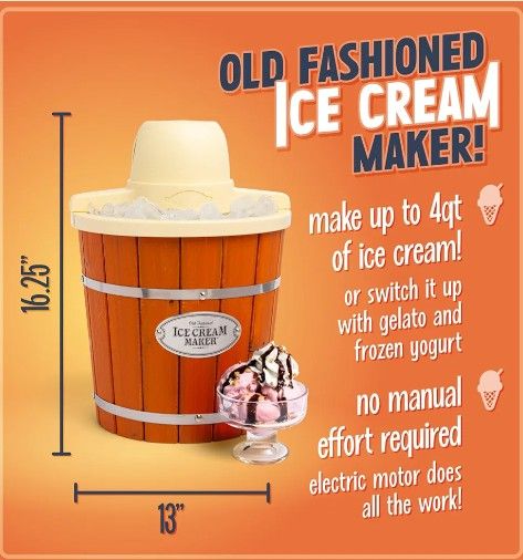 Nostalgia Electric Ice Cream Maker - Old Fashioned Soft Serve Ice Cream Machine Makes Frozen Yogurt or Gelato in Minutes - Fun Kitchen Appliance - Vintage Wooden Style - Light Wood - 4 Quart