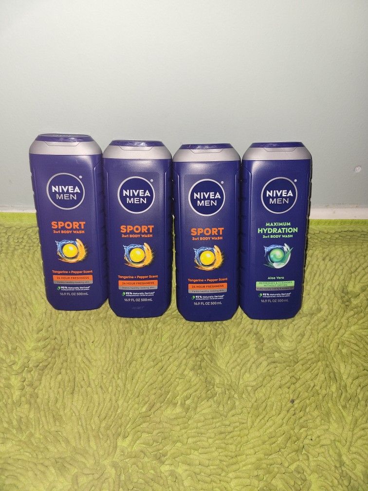 4 Nivea Men Bodywash 16.9oz (3 Sport 3in1/1 Maximum Hydration 3in1)