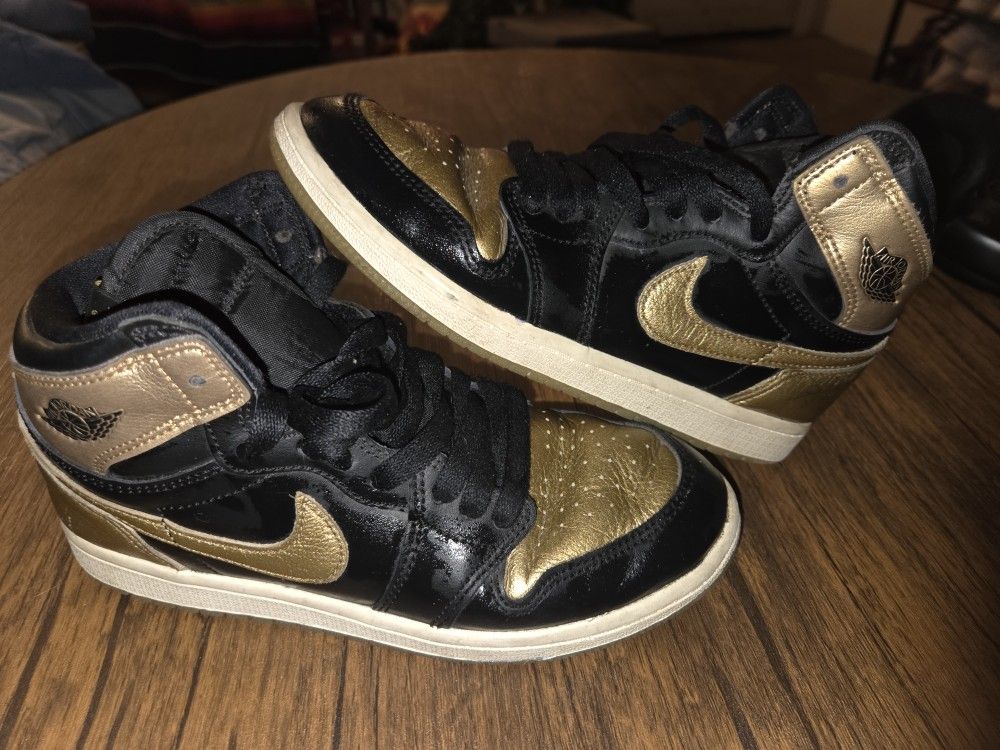 Nike Air Jordan 1 Retro High OG sneakers in a black and metallic gold colorway. Size 3Y Used, Good Condition