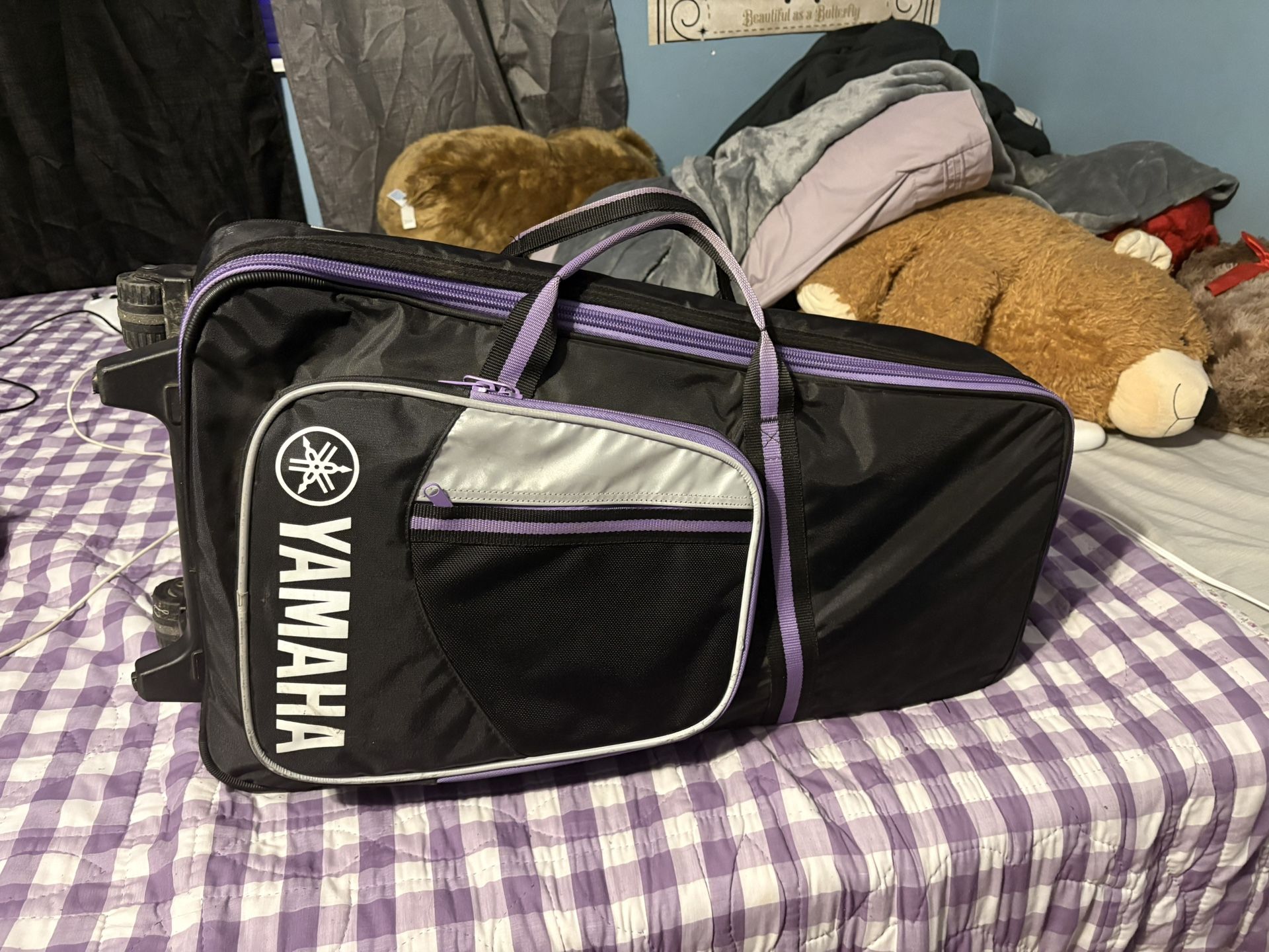 Drum sticks mini drum piece The xylophone itself xylophone sticks Set up stands Song/Notes Book Rolling bag with handles Barley used