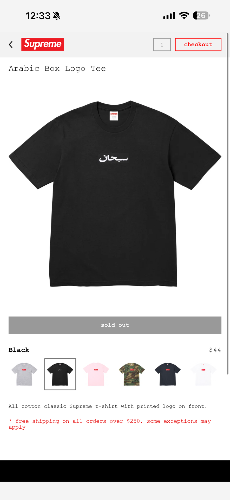 Supreme Arabic box logo tee Size medium Black and Navy $100 each Local meetups Got reciepts for both