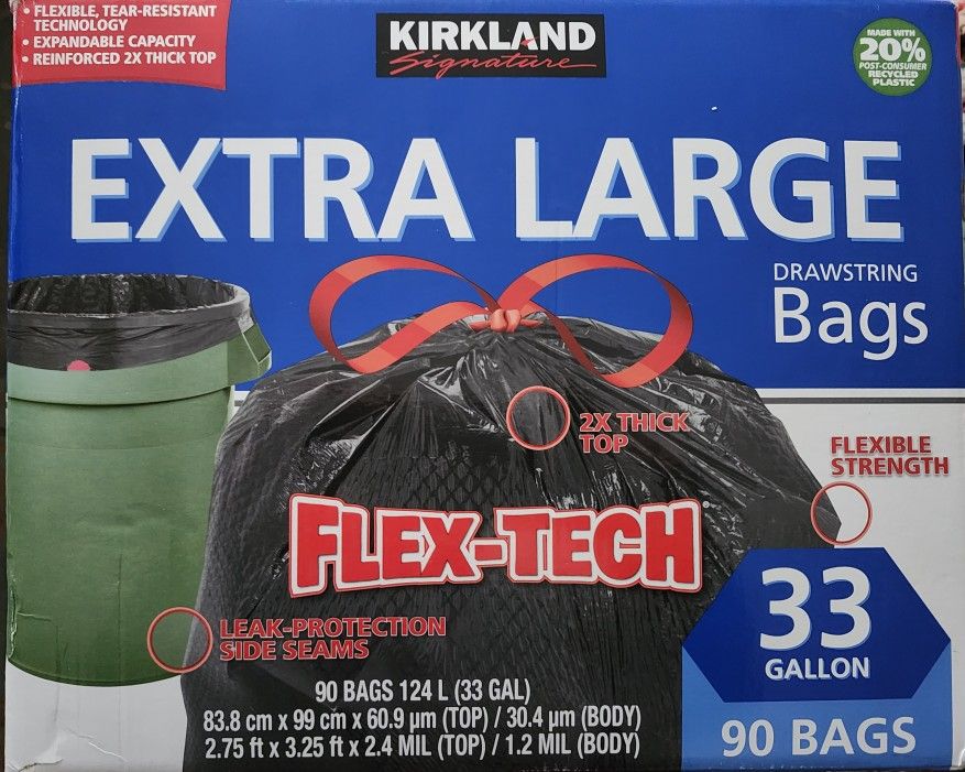 Extra Large Kirkland Trash Bags 33 Gallon, 90 Count