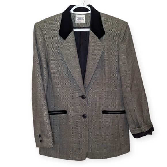 onfirm sizing with your body, it's measures as a flat lay small but no actual size listed Be the it girl" with this blazer! Built in shoulder pads, longer length, pockets flaps in out out, roll up or leave sleeves down, velvet/velour accents/collar.