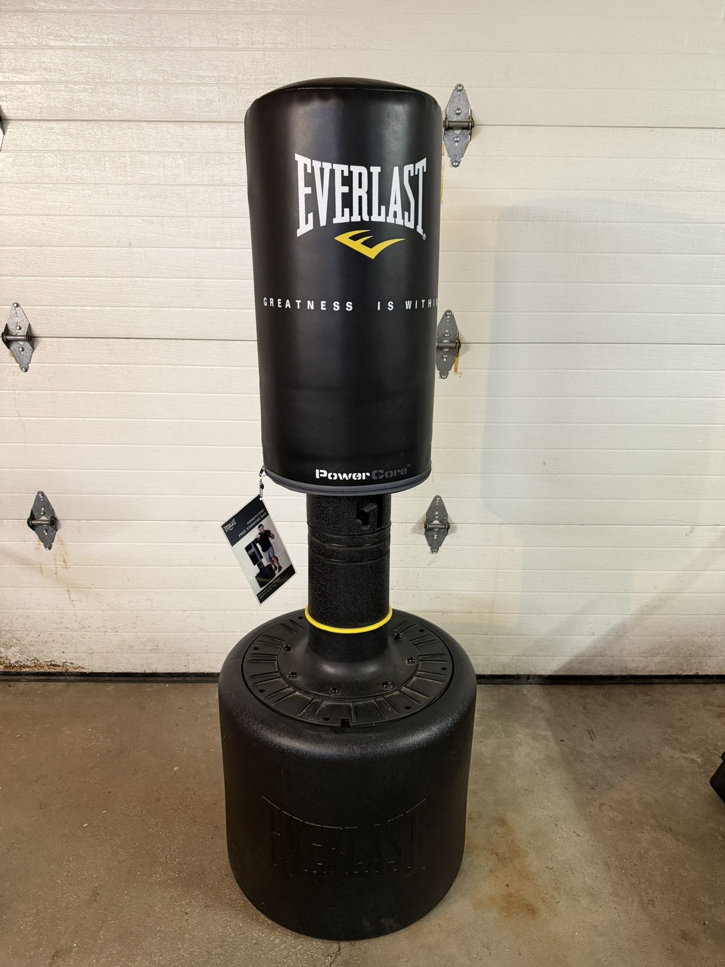 Brand new Everlast adjustable punching bag. This has been sitting in my garage and never been used. Also comes with brand new 12 ounce Elite Ports Boxing Gloves.