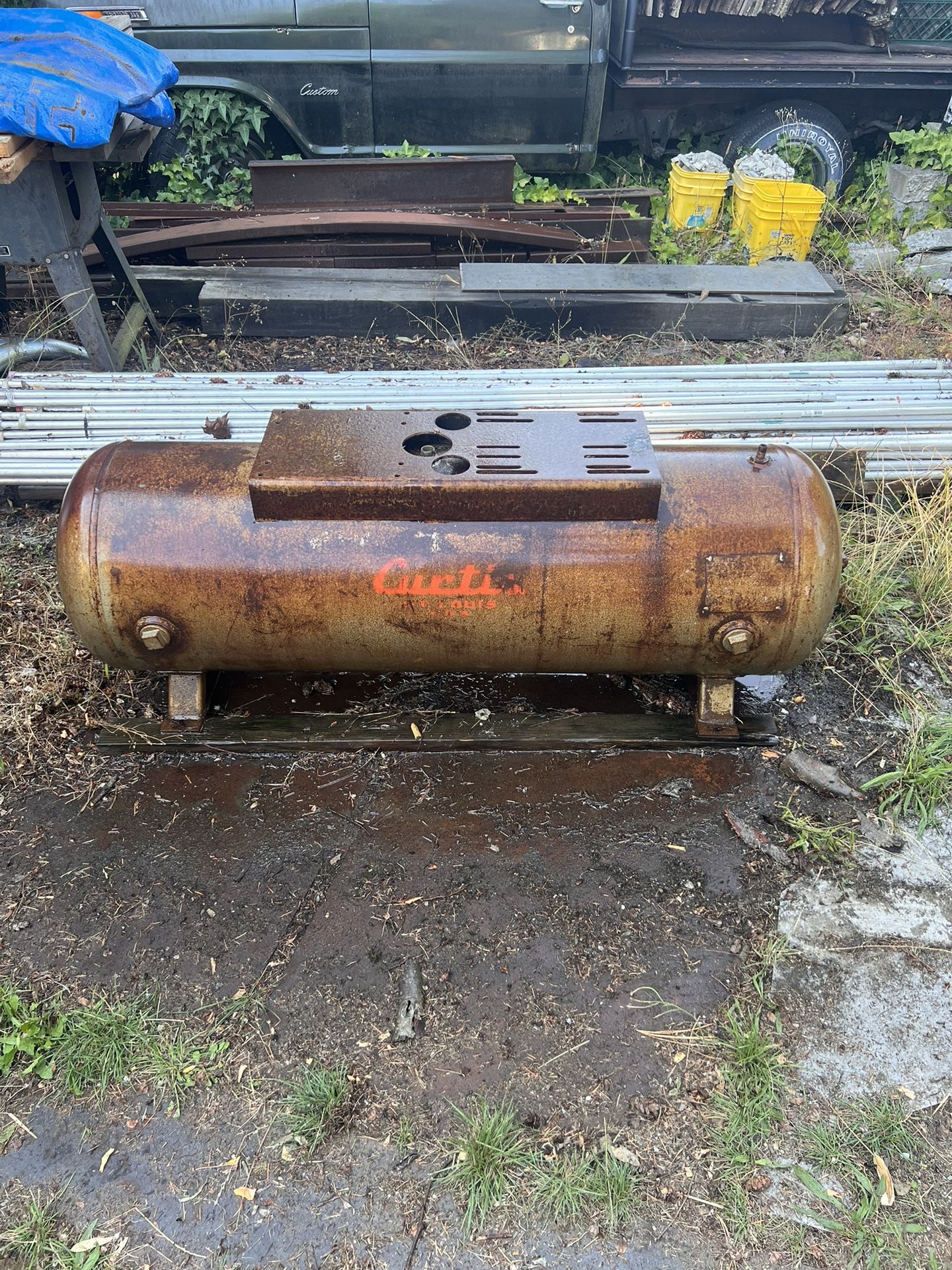 I got this from an estate sale many years ago and always intended on setting it up in my shop. It’s quite large so I ended up not putting it back together after all. It just needs some basic hardware bolts to connect the motor and compressor to the tank ant it should run fine. This needs to go to someone who will use it and have some basic mechanical skills.