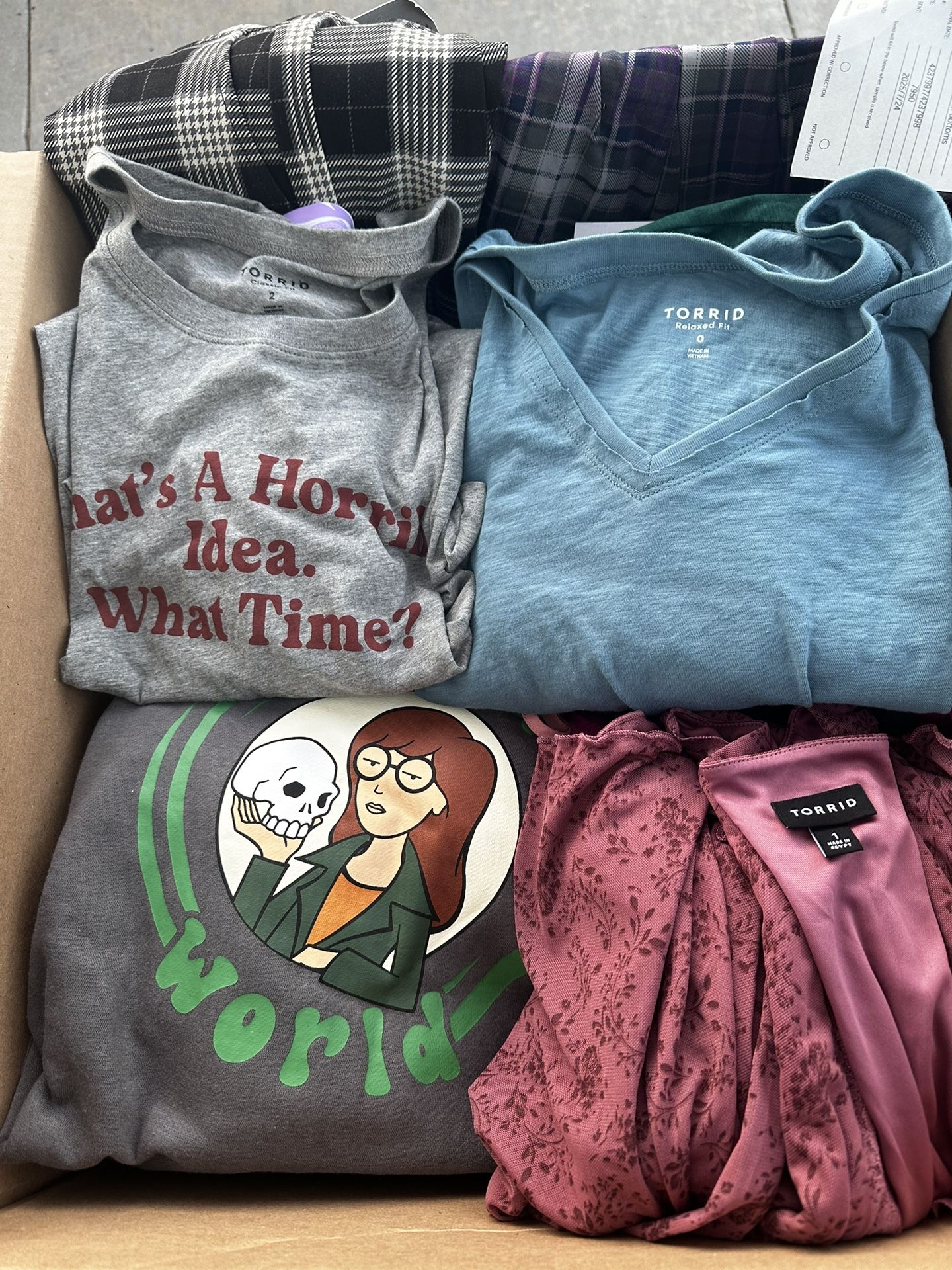 I have many items from Torrid for sale pants, sweaters, cardigans, blouses, shirts, hoodies, sunglasses, and accessories.