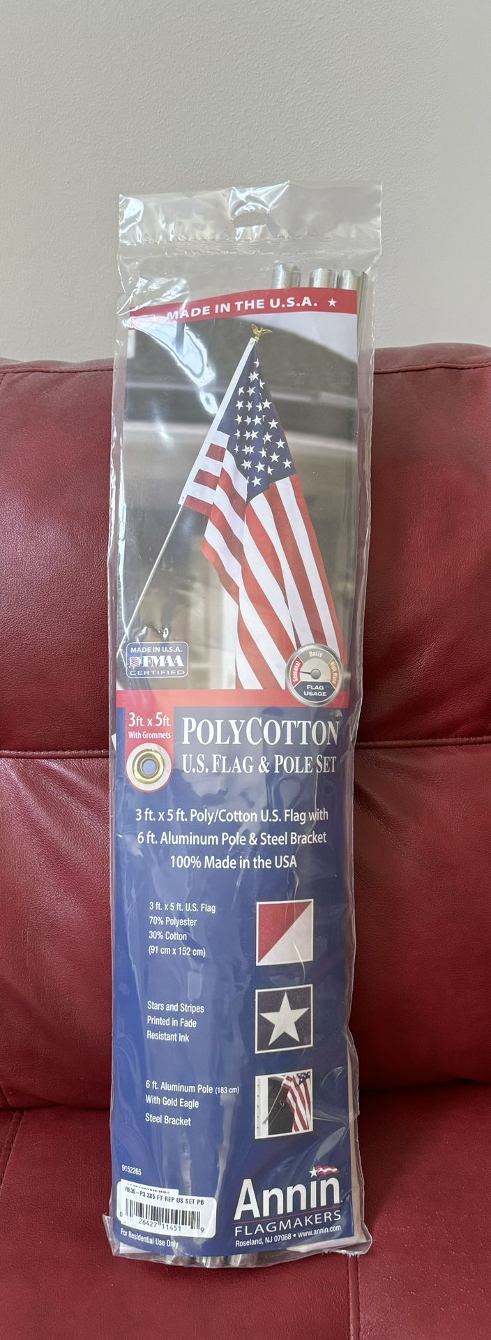 Poly Cotton US Flag & Pole Set (3ft x 5ft) New, never used