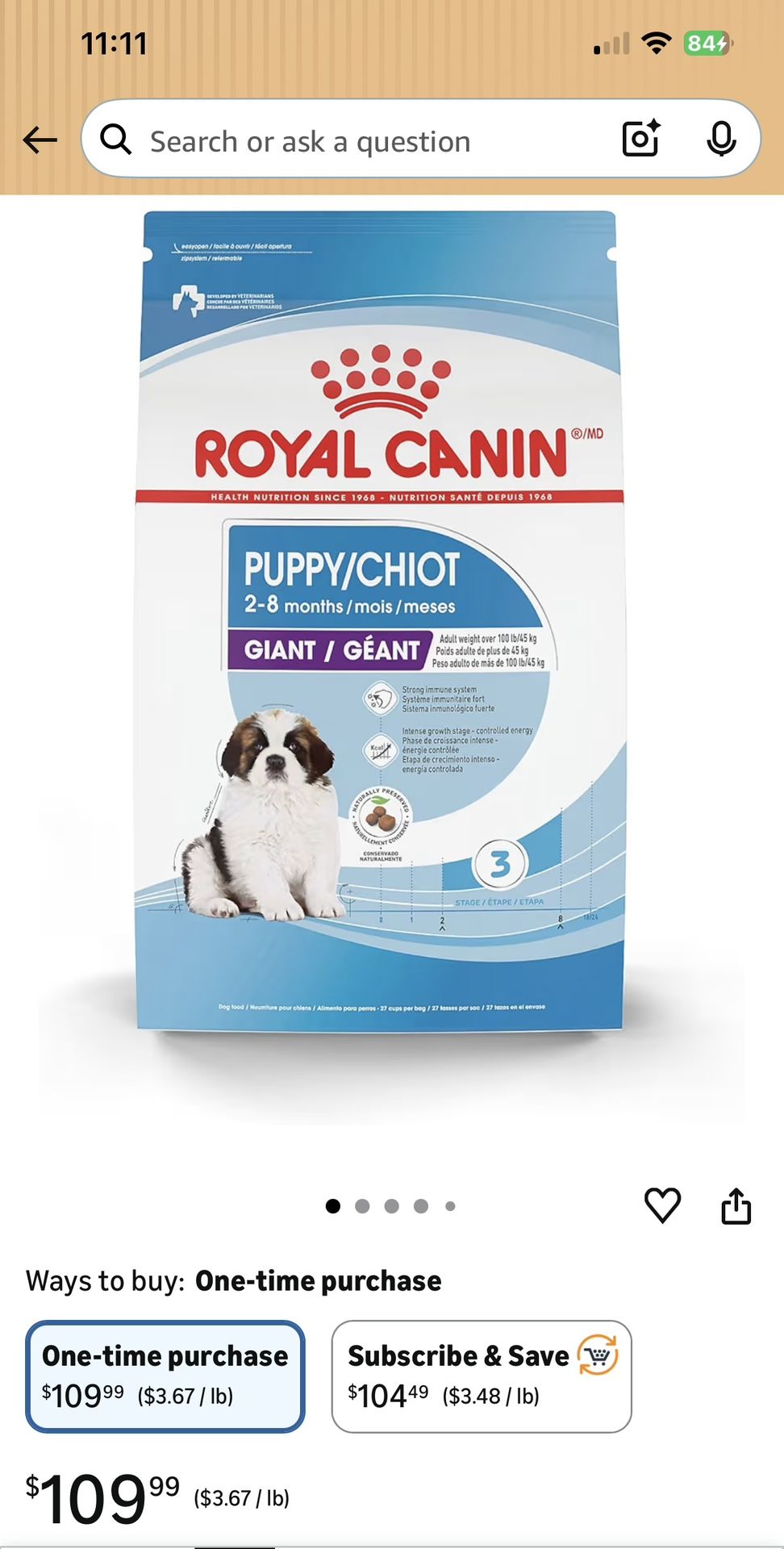ROYAL CANIN Size Health Nutrition Giant Puppy Dry Dog Food, 30 lb Bag Brand: ROYAL CANIN Flavor:Chicken Age Range (Description):Puppy Item Form: Kibble Specific Uses For Product: Immune Support Special Ingredients: Protein-Rich Cash only Location pickup