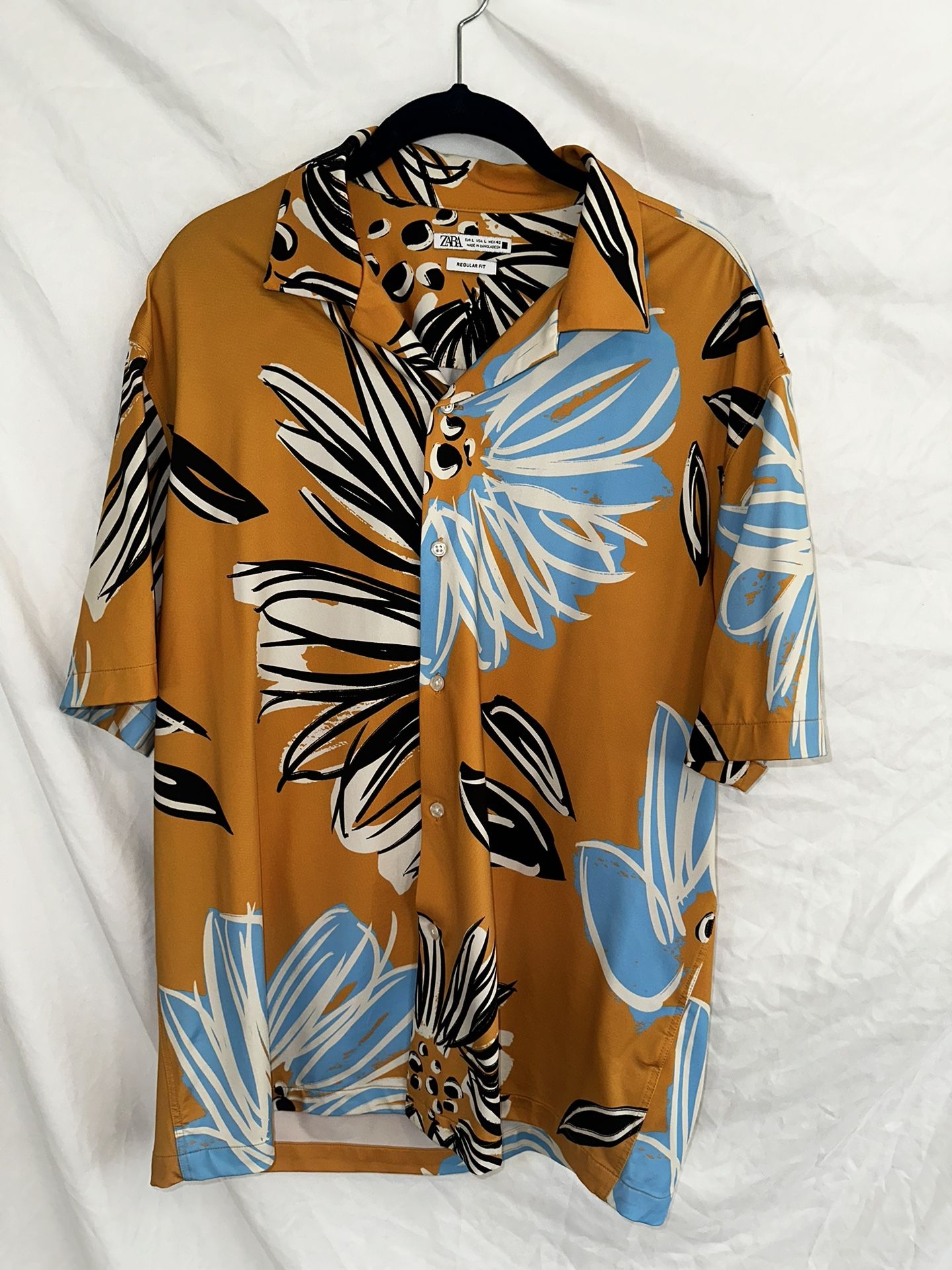 Zara Yellow & Blue Floral Collard Shirt. Size Large. In Great Condition.