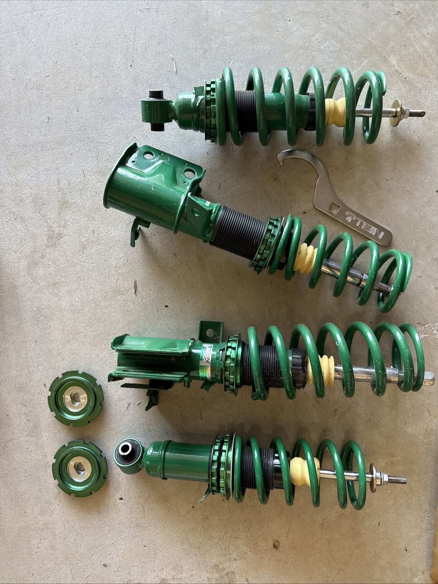 Brand new but they been locked up in my closet, 0 miles on them and I bought them like 3-4 years ago. Everything is completely new and nothing is broken. I do have only one Tein adjustment wrench for these, I lost the other one.