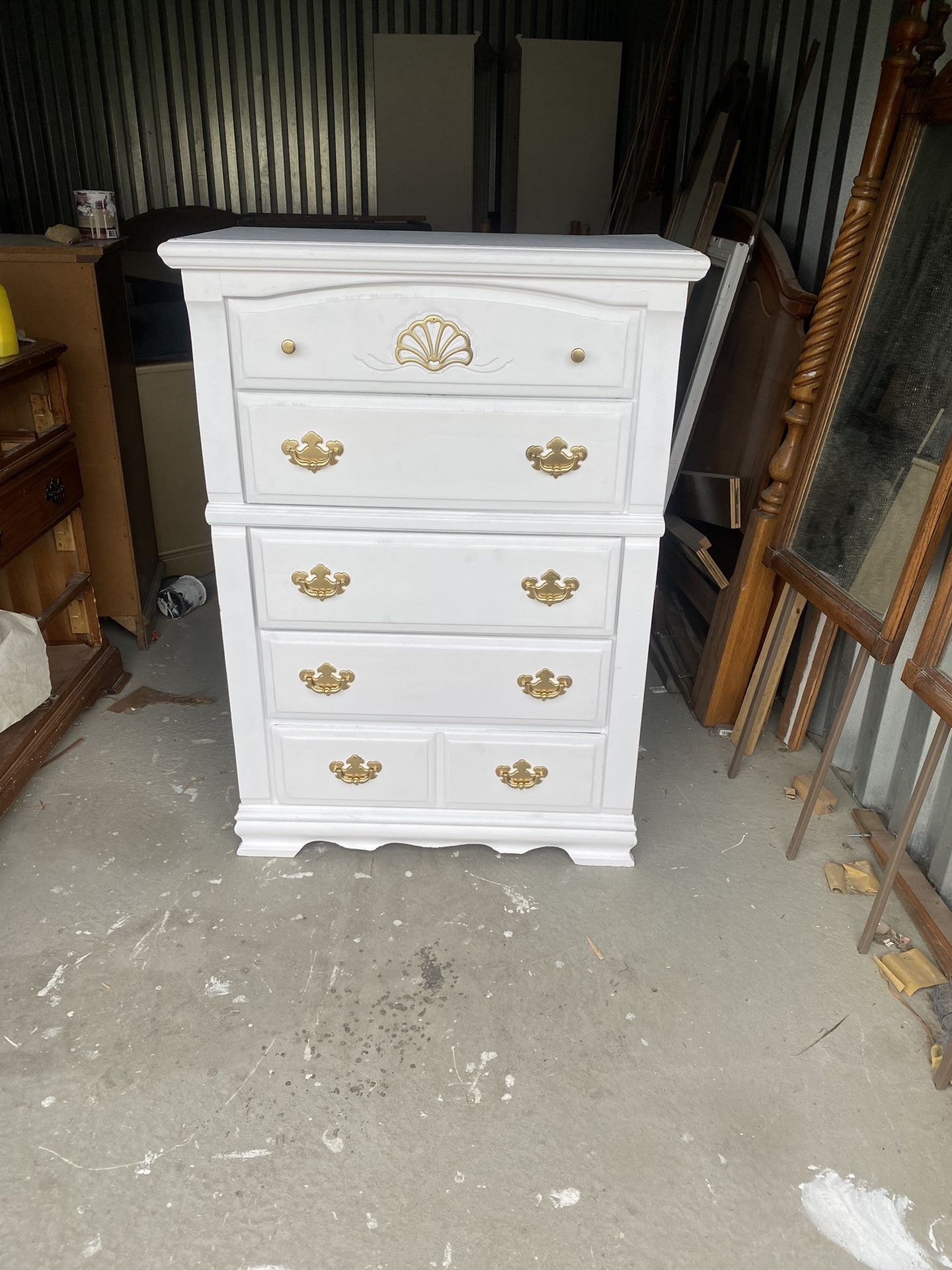 White solid wood dresser h 50. X l 36. X d 18 newly painted