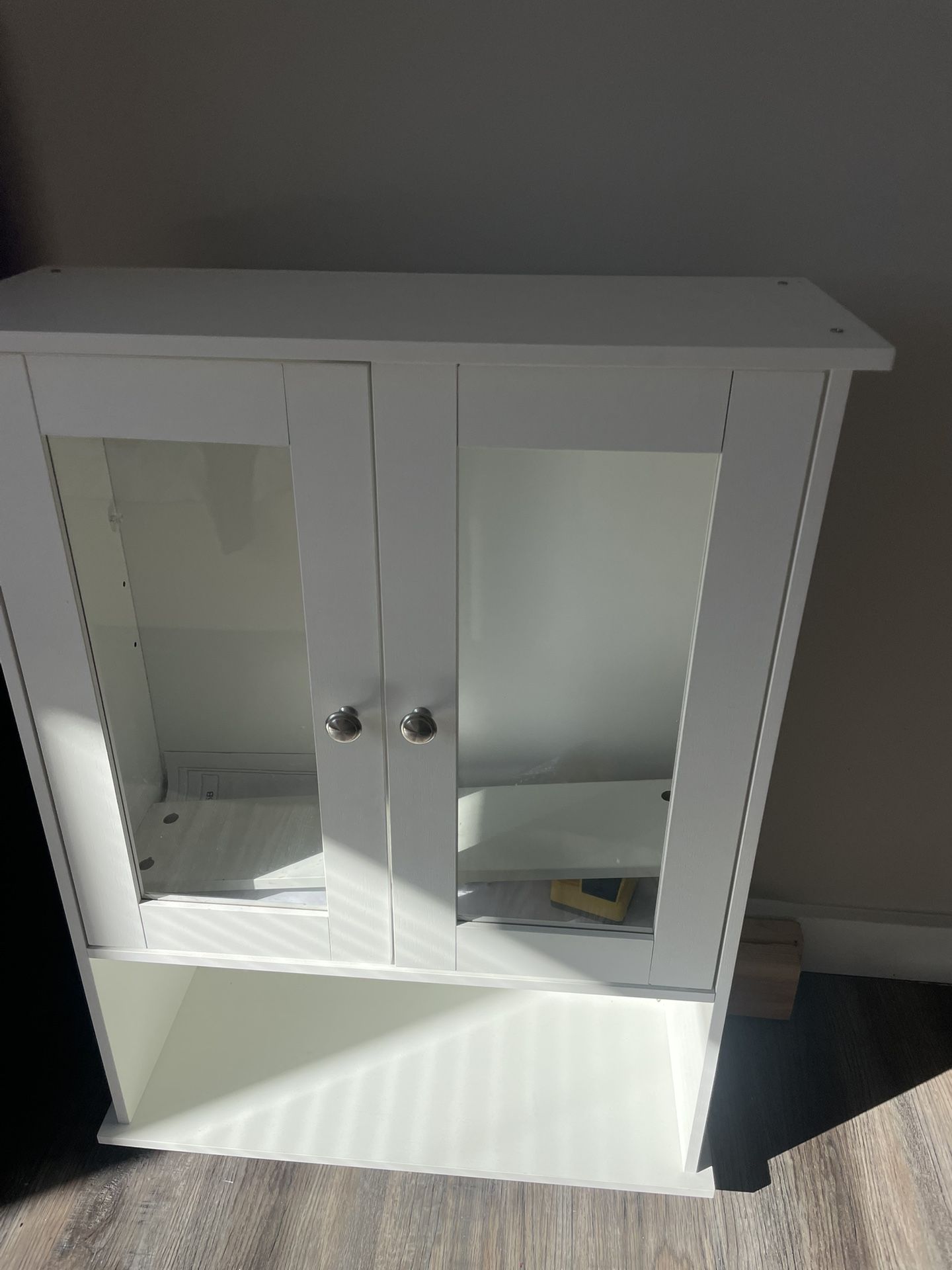 White multi-use wood and glass cabinet with all original pieces and instruction manual. The cabinet is already assembled. I just moved and don’t have enough space to set it up—looking to sell it this month or donate to Goodwill. Serious inquiries only.