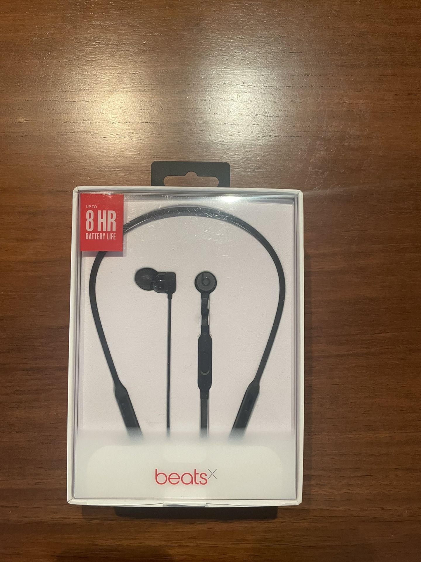 Bluetooth wireless earbuds by Beats. The model is the Beatsx. Like new