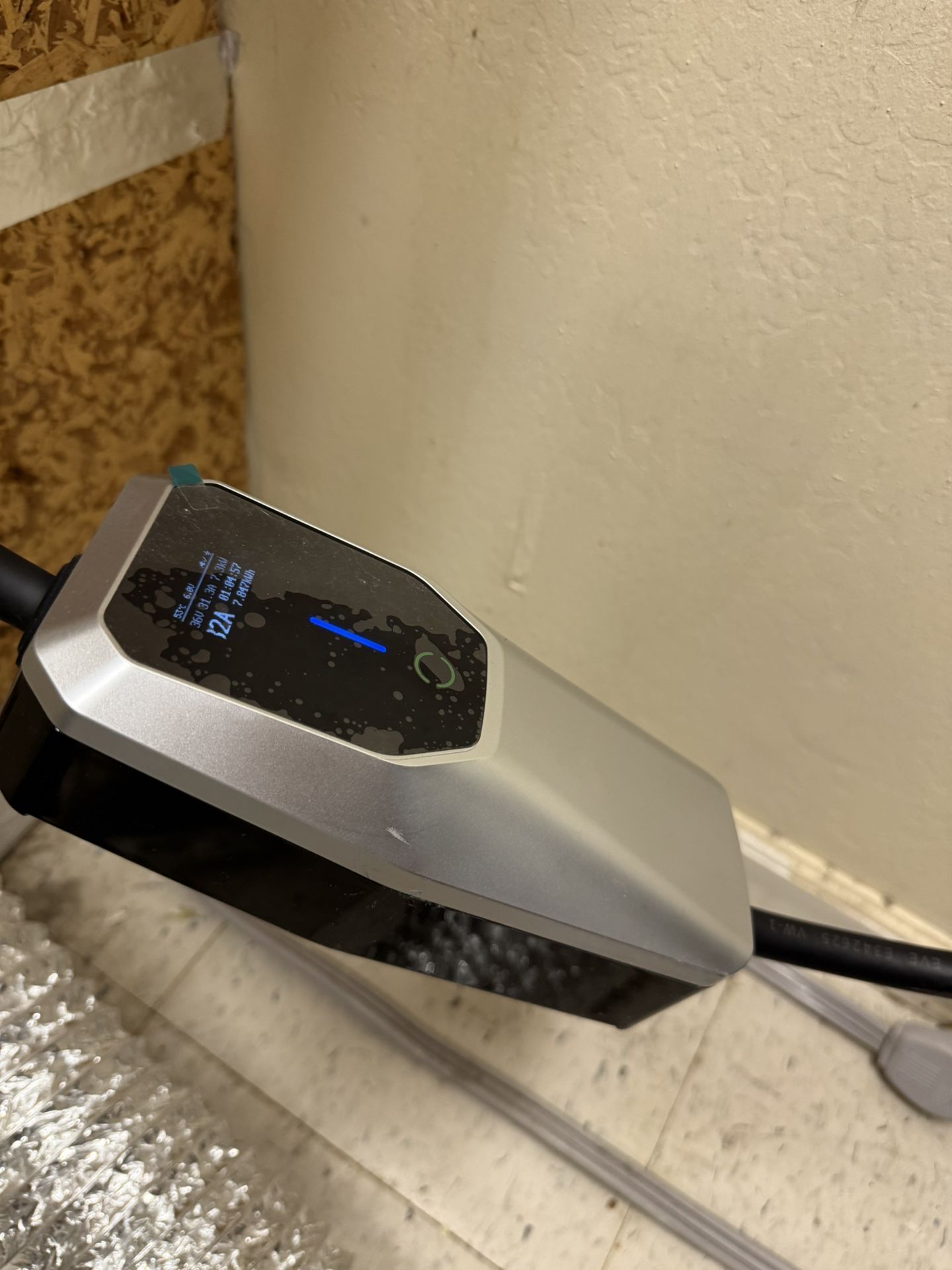 In new condition. It has been used for a week. No issues at all! It had variable speeds and amps so you can choose the speed on the go, depending on the outlet, from 6A to 32A. Great charger for any electric car!!! Honda Tesla Rivian Chevy Ford GMC BMW Mercedes