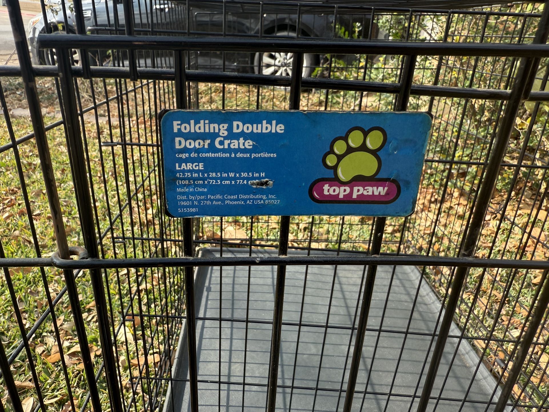 Large dog house and kennel fits dogs up to 150 lbs Both work great $70 for the dog house $50 for the kennel $100 for both Kennel is 42.75 x 28.5 x30.5 comes with tray and divider.