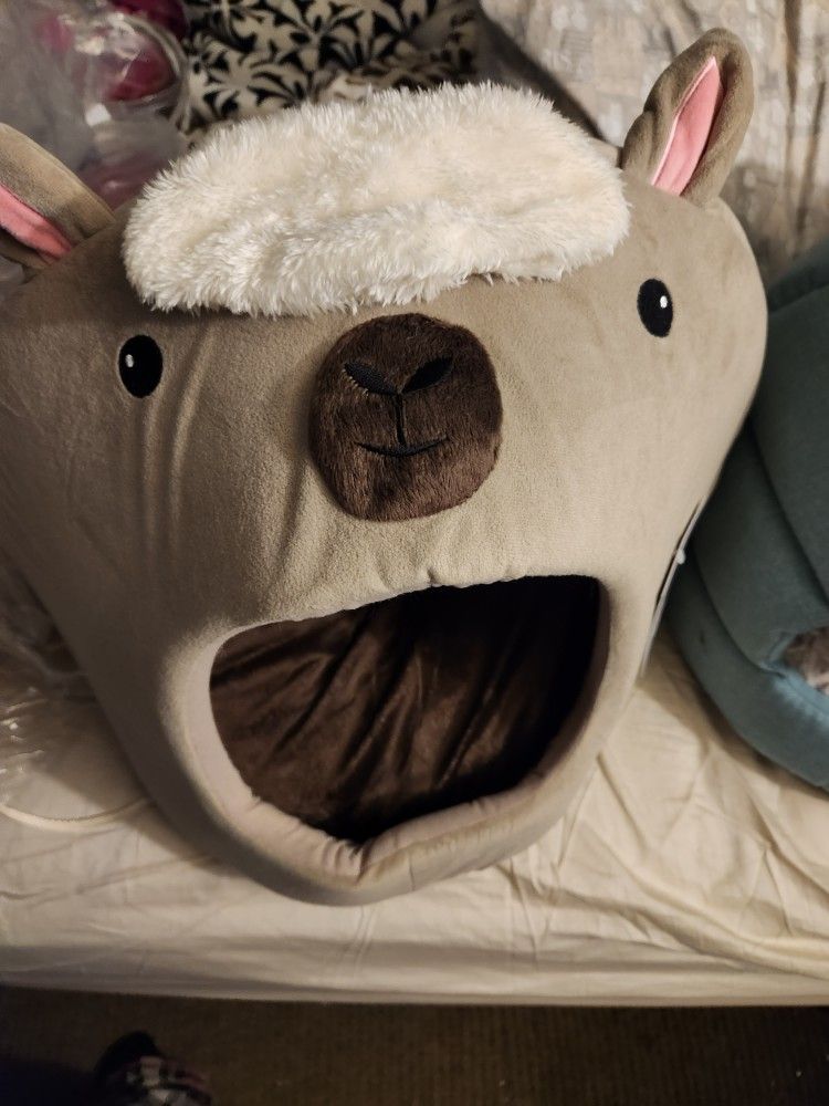Lama head dome with pillow inside Flat bed no dome Teal one has a fluffy pillow inside great for dogs cats, ferrets, whatever Price is each New in original plastic