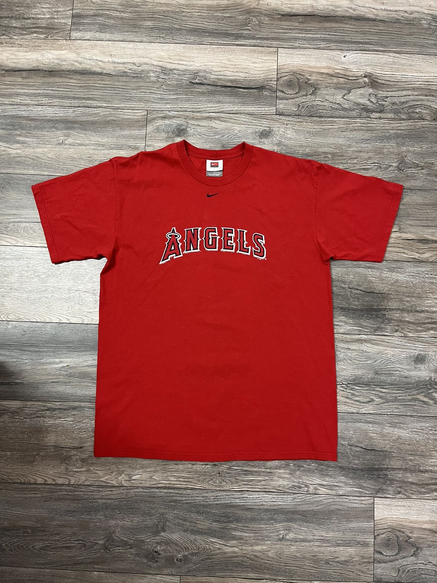 Vintage Nike Center Swoosh Los Angeles Angels Red T-Shirt Men's Size Large 2006 This t-shirt is in used condition. It is in perfect condition for its age. The graphic print has no issues. See photos for details. The measurements are 23” pit to pit and 31” in length. The tag states size Large, but please keep measurements in mind before purchasing. Feel free to message me if you have any questions. Thank you!