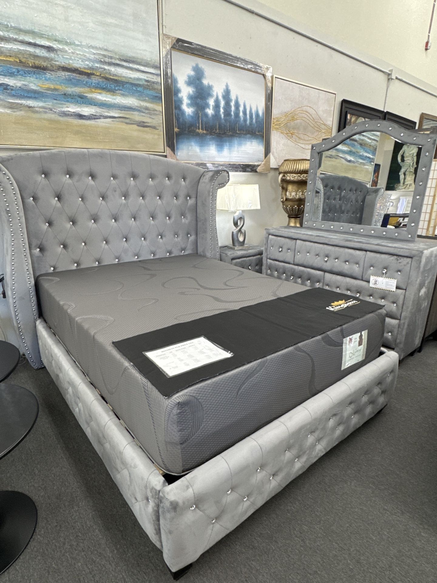New Gray 4PC Shopia Queen Bedroom set (Mattress is not Included)
