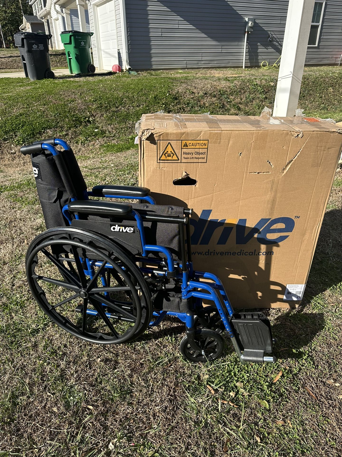 Drive Medical Blue Streak Lightweight Wheelchair - Portable Folding Mobility Aid - Swing-Away Footrests - Desk Arms - Durable Steel Frame - Easy Transport & Storage - 18-Inch Seat Lightly used/ like new condition Pick up at North Charlotte 28213
