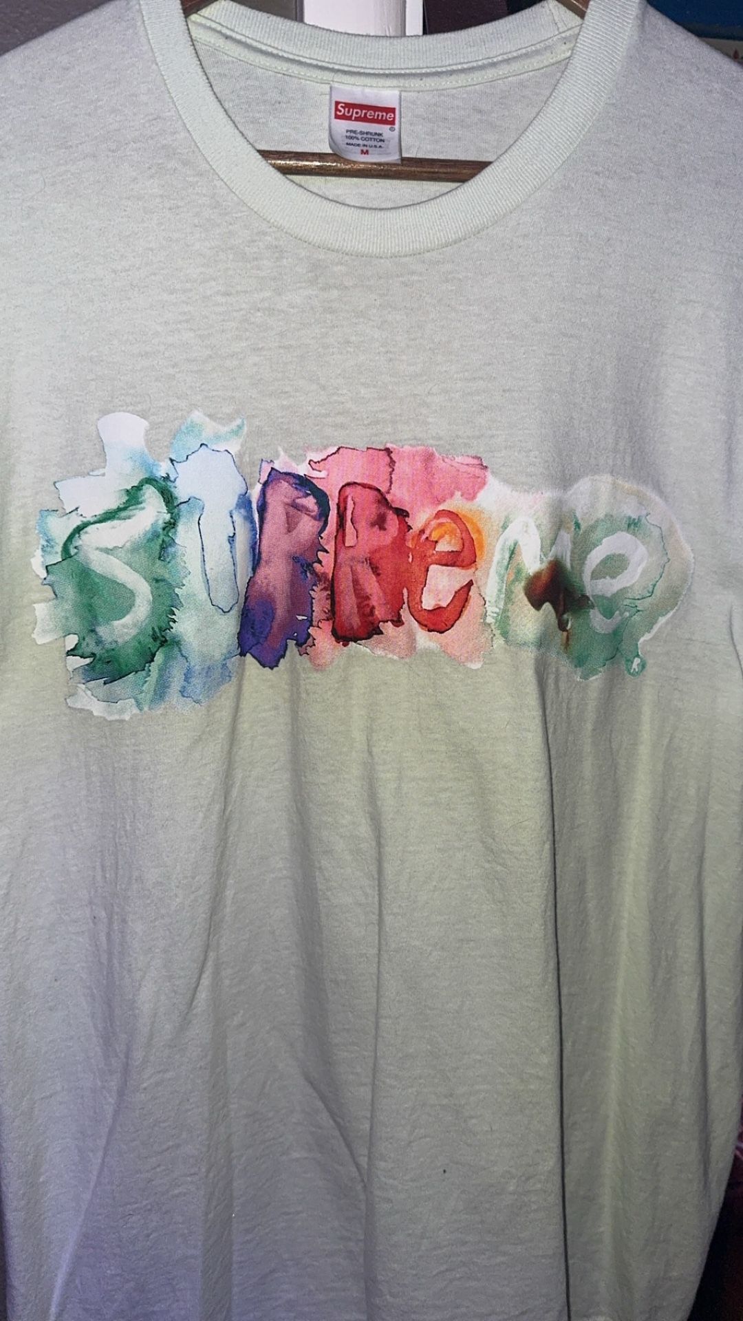 For sale is a Supreme Watercolor Tee “Pale Green”. Worn once and washed once. No stains. Released in spring summer of 2023. Size is a Medium. Any questions, message me