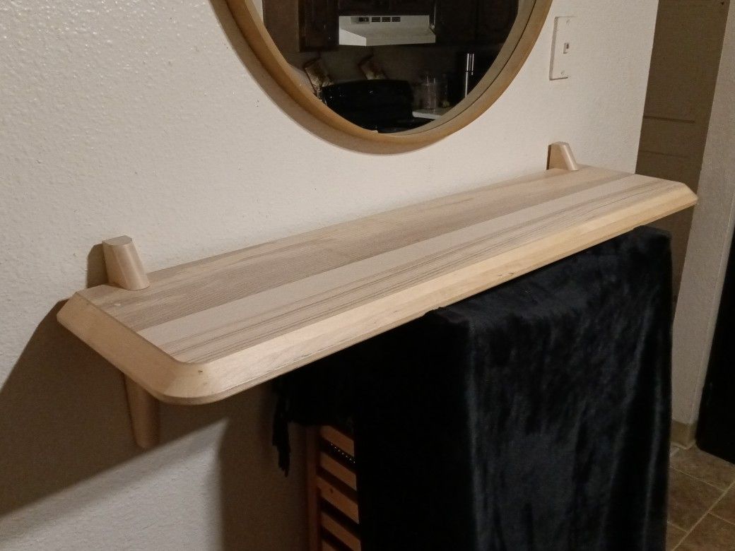 Selling in very good condition this Ikea wall mount shelf dimensions 45" wide10" depth 12" tall from brackets lightweight wood peace asking $40