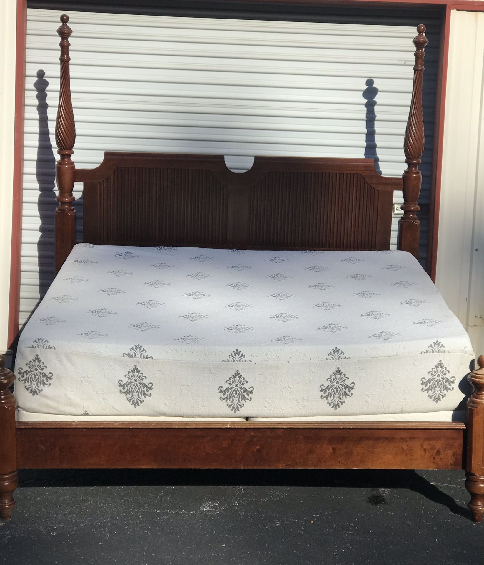 In Good Condition. Includes: Headboard, Footboard, Mattress Set, and Bed Rails. Delivery Available