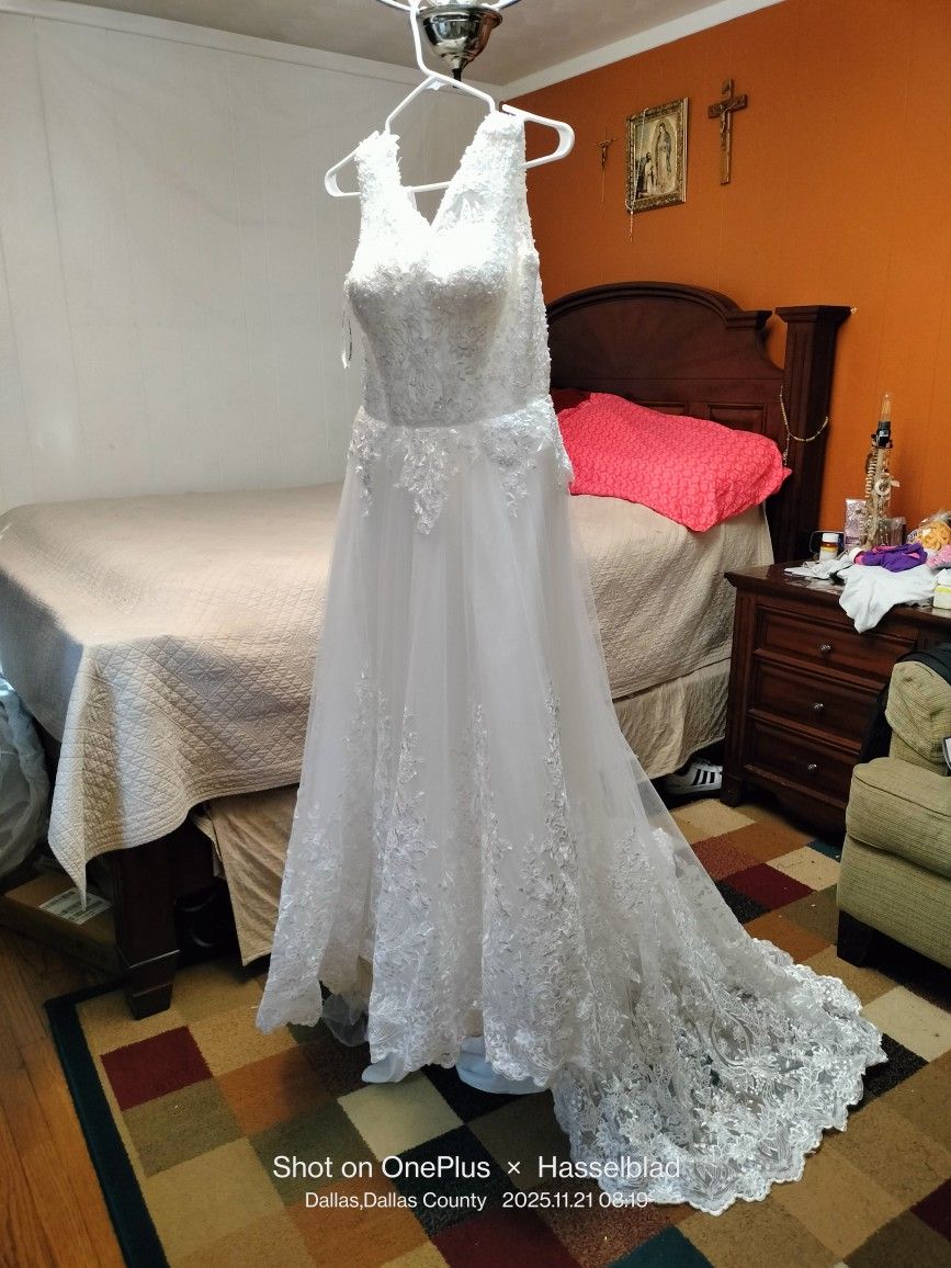 Vestido de novia muy bonito en execelentes condiciones solo lo use un rato es size L y color Ivore.
