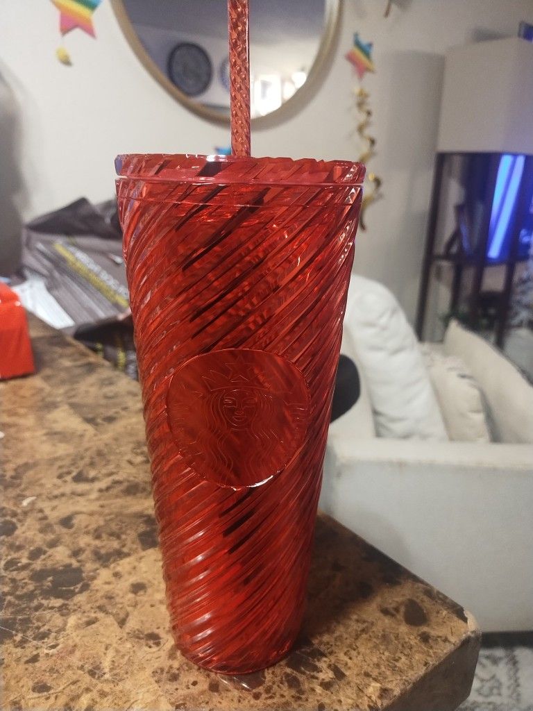 Red Starbucks cup with straw like new cleaned washed ready to go asking $15