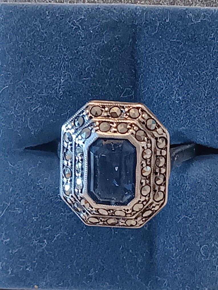 This rich color center stone is a lovely cocktail ring. Solid 925 silver custom made from estate. This ring size 7 and well crafted. Stone has full brilliance. Deep blue color as to photo. Local and cash only. Will consider best offer.