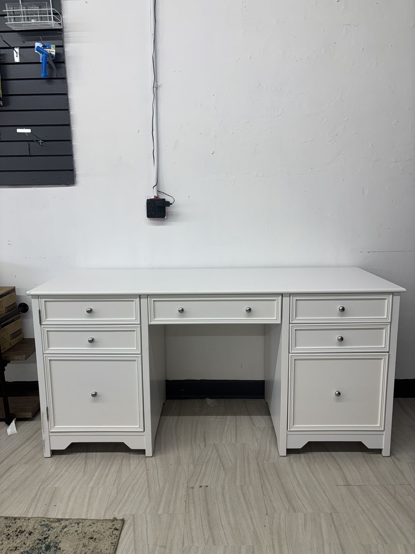 Home Decorators Collection Bradstone 63 in Executive Desk Has a small damage(see picture) Retail for $799.00 Our Price $499.99 Meko (contact info removed) GS Liquidators 1260 Hwy 85 North Fayetteville, Ga 30214 #Mekoselleverything#Mekothecarlady#Bargainsales#greatdeal#savings#officefurniture#homedecoratorscollection#writingdesk#desk#executivedesk