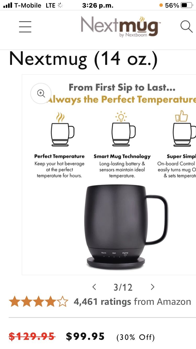 Nextmug - Taza de café autocalentable con control de temperatura (negro, 14 onzas)