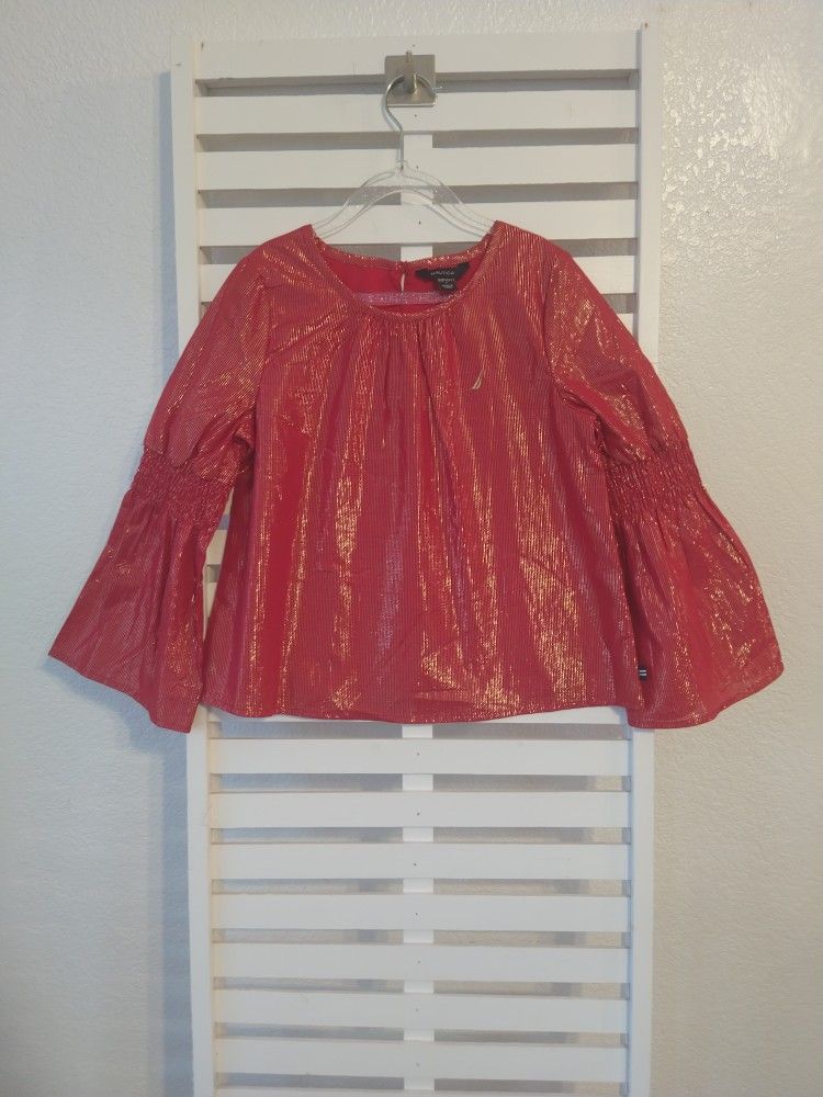 Nautica girls metallic red with gold top Long sleeve Bell sleeves Nwot! Size 5 Have additional sizes 6x,7,8,10,16