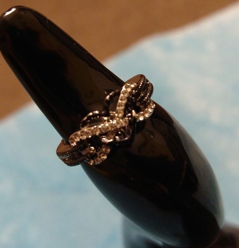 Stunning Crossed🖤 Black Heart Ring Size; 7 Color; Black & White Material; Stamped 925 Sterling Silver 14K Black Gold Plated Stone; Black & White Crystal Gemstones Weight; 3.20g Pick-Up in Gladstone