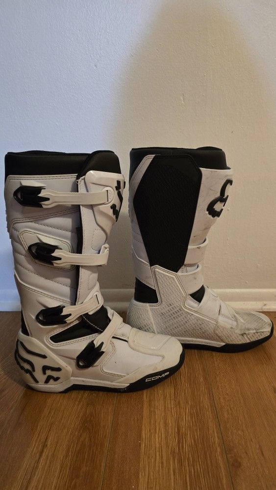 Need some solid riding gear without breaking the bank? Brand/Model: Comp Boots Color: White Sizing: US Men’s 10 / EU 44 Solid construction, all buckles work perfectly. Only $20. Message if interested!