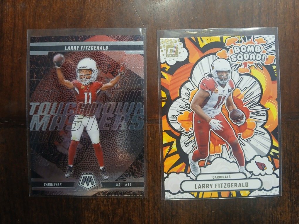 I have this 2 larry Fitzgerald cards for sale fresh pulls 1 bomb squad insert & 1 touchdown masters big head insert im not looking I want $2.50 firm firm firm for boths offers will be ignored
