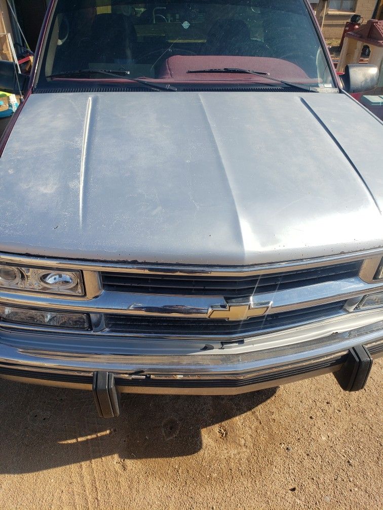 Obs chevrolet gmc truck Tahoe suburban hood 88-98 . Silver hood sun faded small dents. Just needs a light sand and clear coat Pick up only. Obo