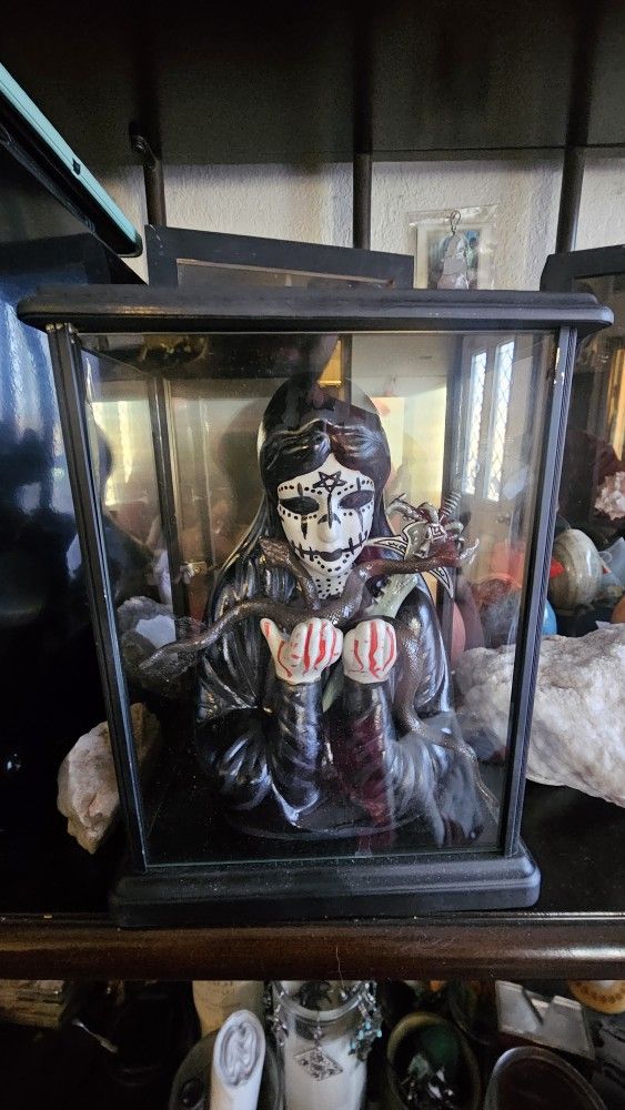 goth figurine with glass case