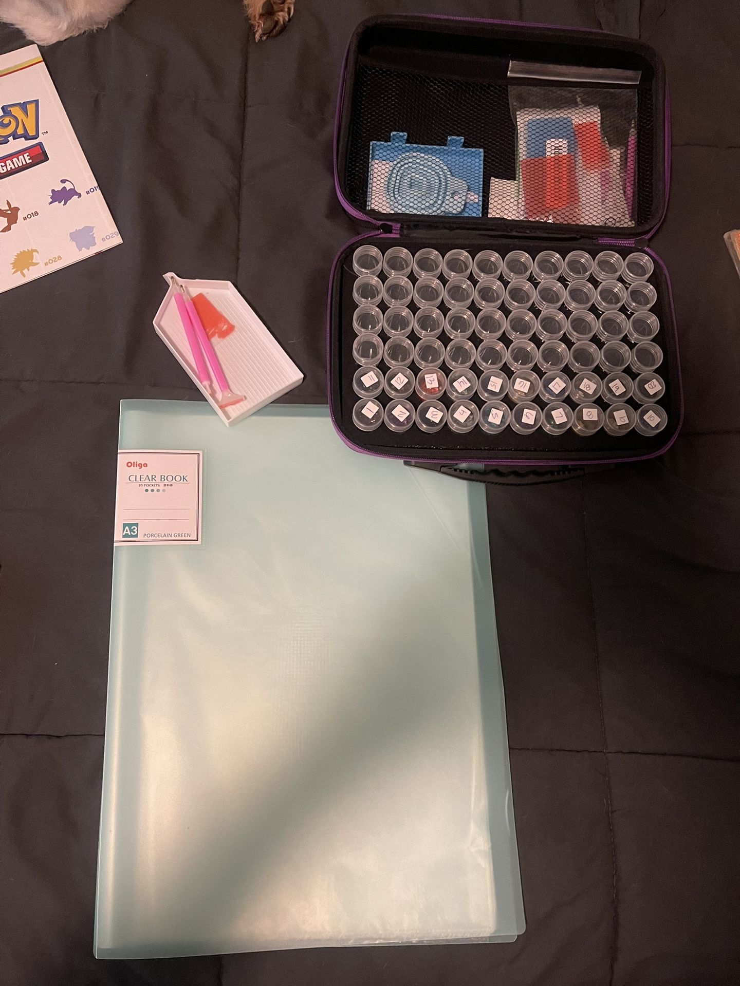 Comes with everything shown great bundle Comes with clear book to store your diamond arts Will include a diamond art for no extra charge