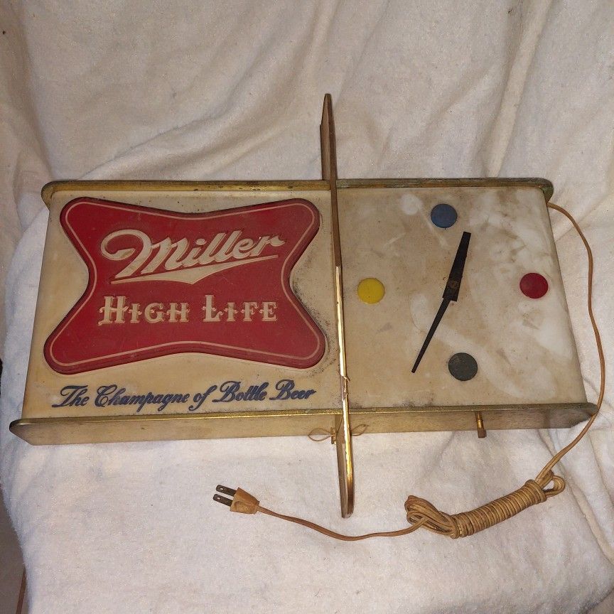 Miller High Life vintage wall clock in very good condition. Lights up and no damage to unit seen. It comes with years of dust only $100.00. Compare the value please.