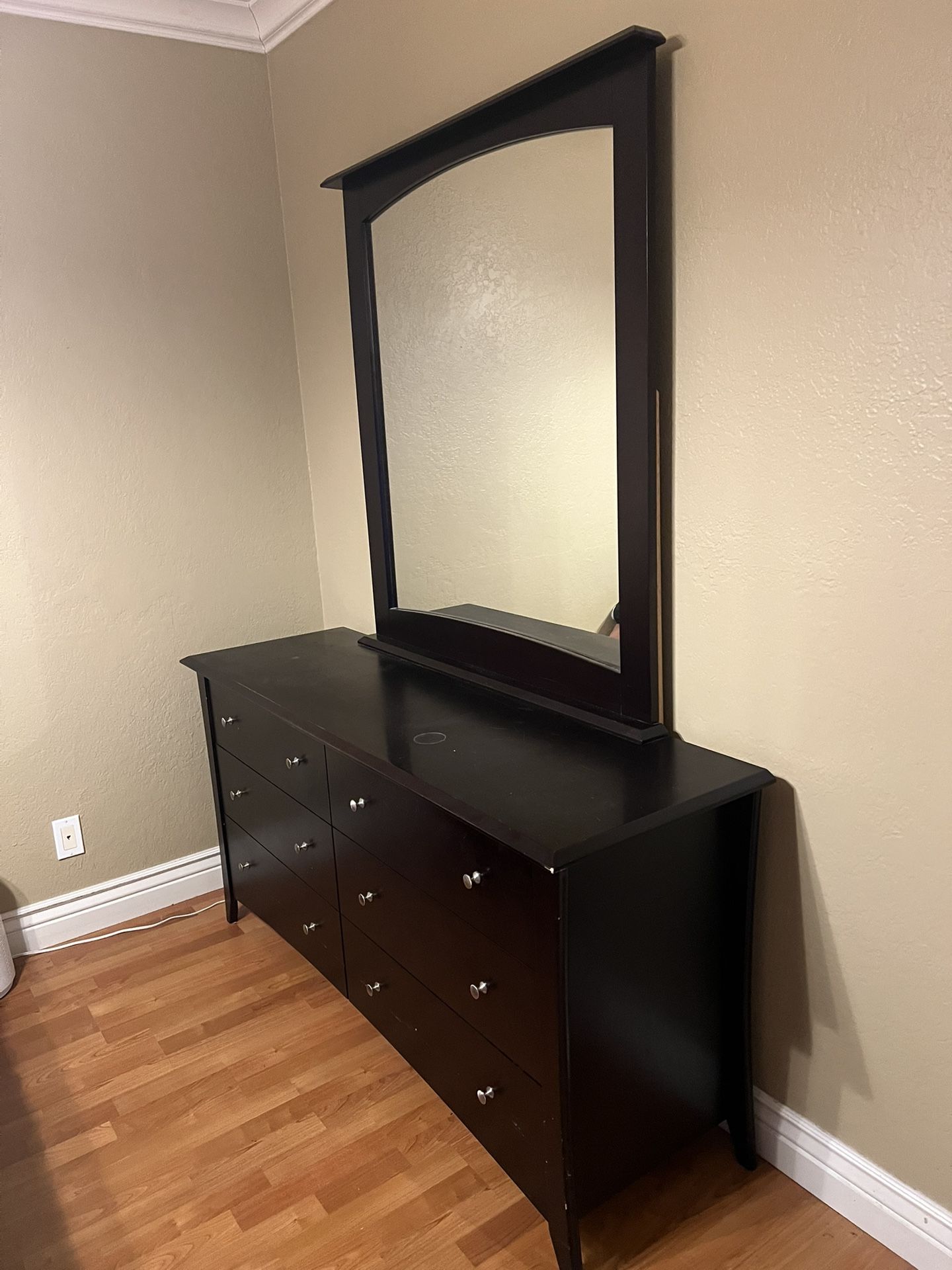 I selling this dresser with mirror solid wood pretty good condition has a few marks but overall pretty good. Let me know if you're interested.