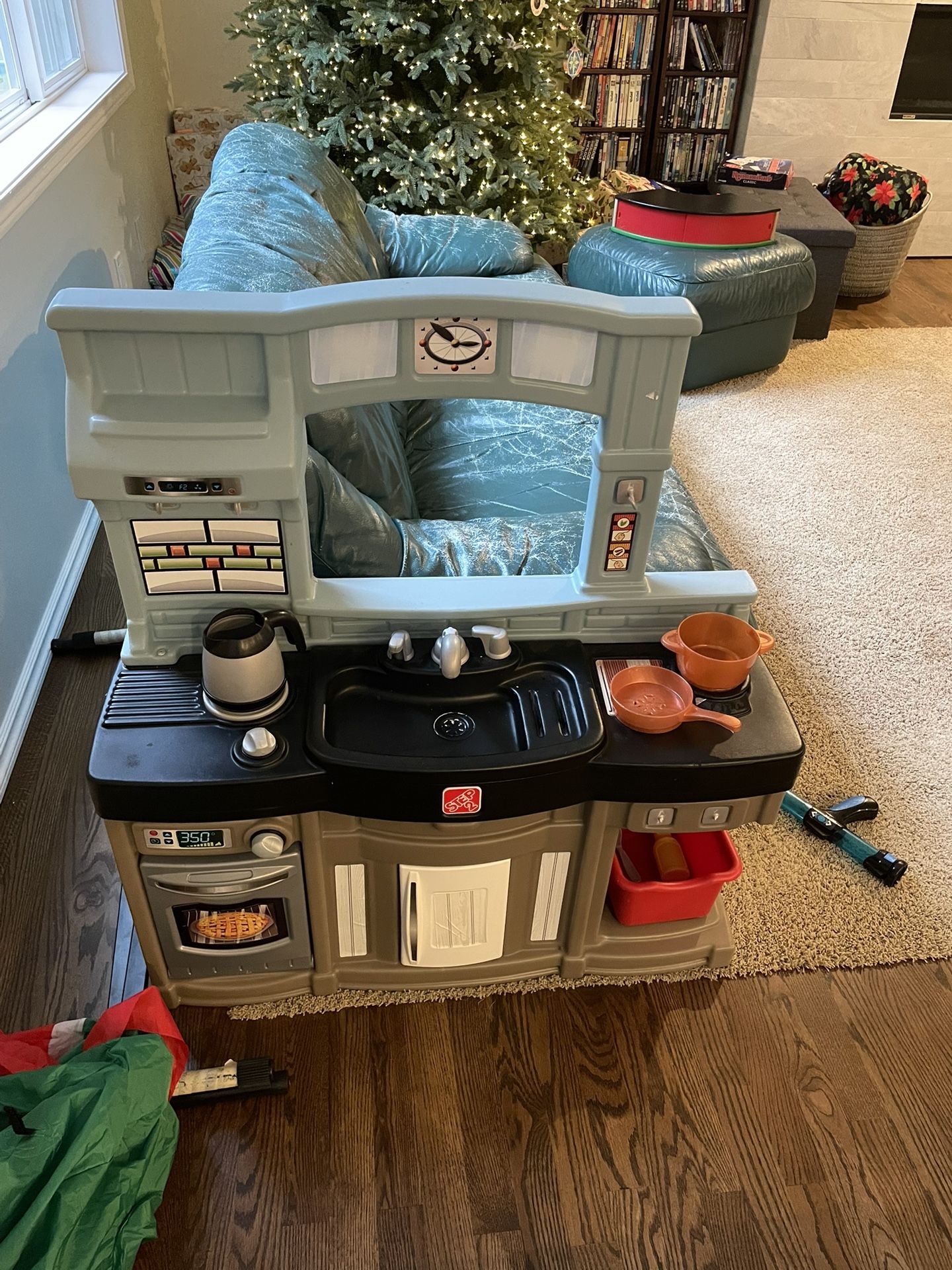 Comes with pot/pan/kettle (makes noise when in element :) ) some food/accessories. Kids loved it but now are old enough they’re baking in my kitchen 🤣.