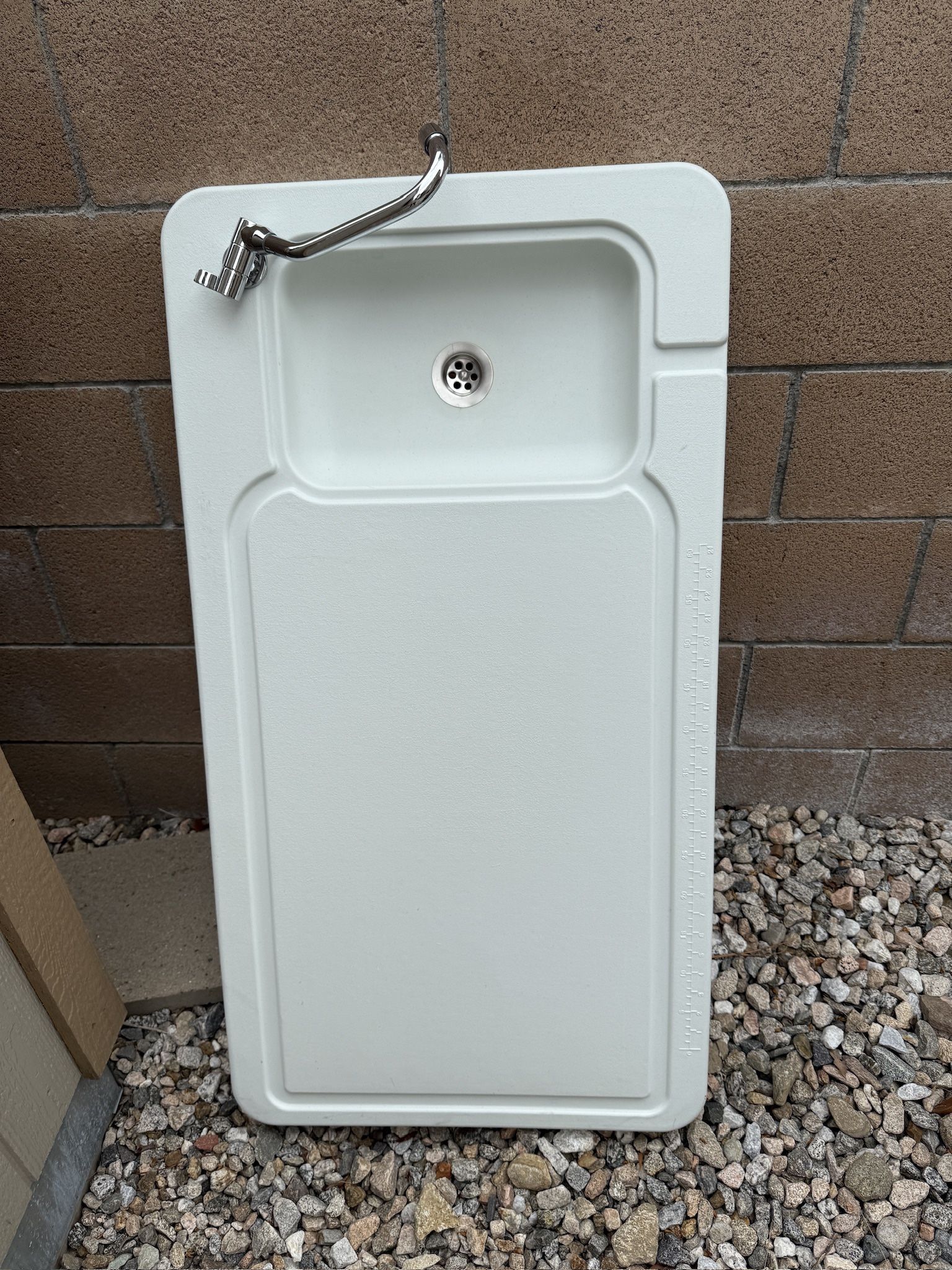 Fish cleaning table for outside use. Connects to an outside hose for the sink. Faucet included.