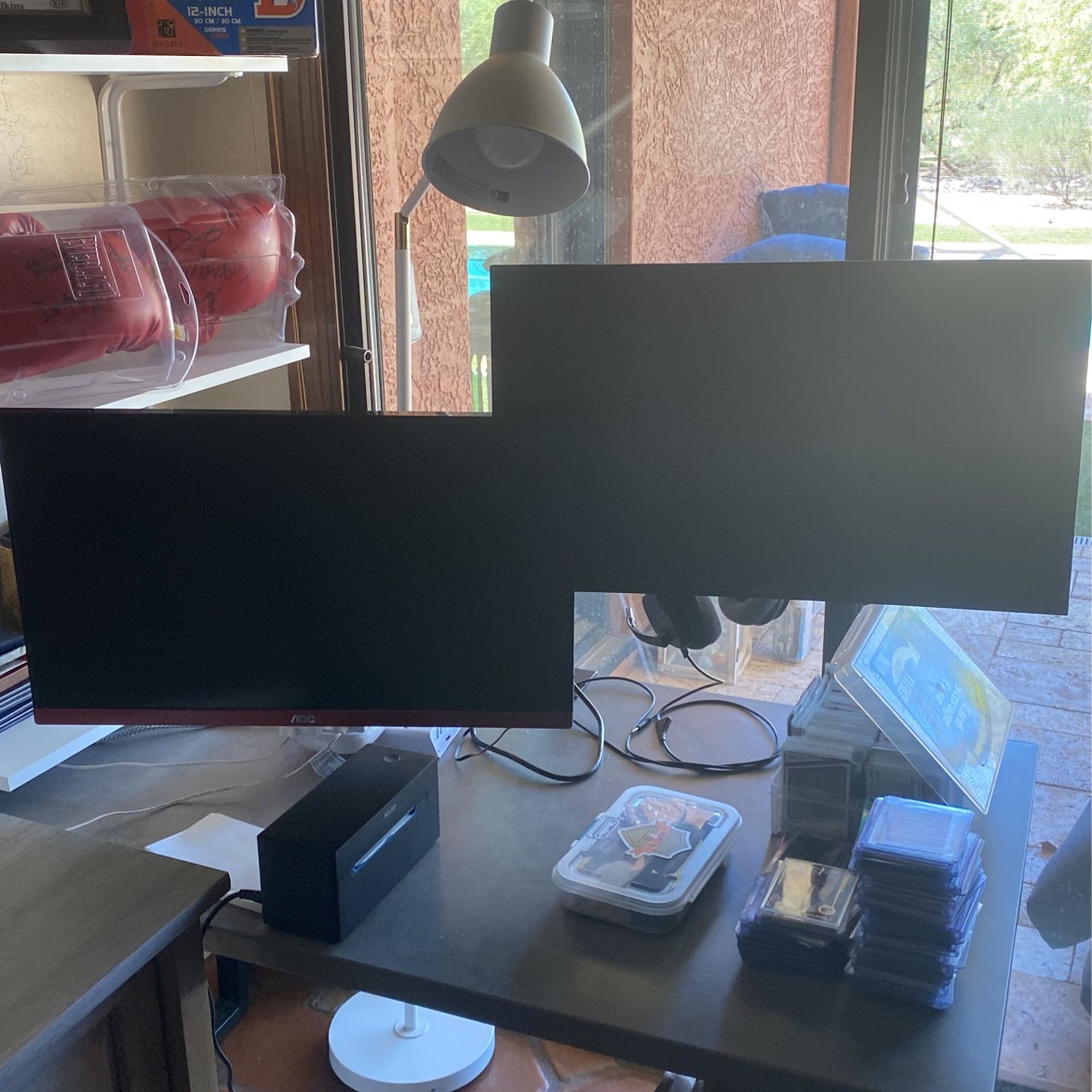 Message what you are interested in. Here is everything: 2 monitors Dual monitor stand Controller charging stand headphones PS4 with 4 controllers and games All of the wiring