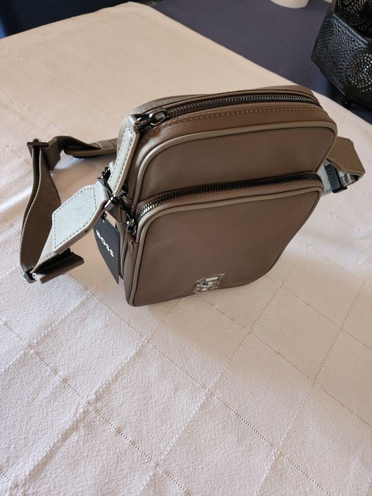 HUGO BOSS CROSS BODY BAG MEN ✅️ VERY NICE RARE COLOR LOOKS GREY AND LIGTH BURGUNDY MIXED HAVE TO SEE IT IN PERSON TO APPRECIATE IT✅️ NEW NEVER USED‼️✅️ 100% AUTHENTIC HAVE ORDER NUMBER AND DATE ORDER ON PICTURES...✅️ ASKING $160.00 FIRM